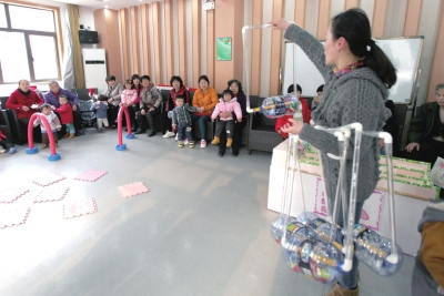 1月3日一大早,延吉新村街道第四睦邻中心里就满是孩子们的嬉戏声。“同心园”沙龙项目新年的第一场活动开始了,主题为亲子早教互动,社区内的外来媳带着孩子来到中心,跟着控江五村幼儿园的早教老师一起开展互动体验。“这个年龄段的孩子对声音特别敏感,我们可以在家里做这样一个简单的玩具,让孩子感受不同的声音,锻炼他们的感观。”在孩子们欢快玩耍的同时,早教老师还将育儿知识穿插其中。