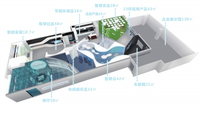 中心包括智能家居综合体验区、智慧社区功能分析体验区、节能环保监测应用分析体验区等九大展示区,参观者只需一部手机或一部iPad即可全程体验。