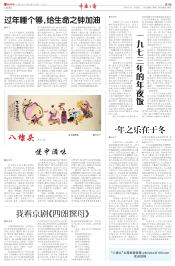 《四郎探母》话来长,一度禁演真冤枉。说是叛国投敌罪,阶级斗争要抓纲。世上处处真情在,哪个儿子不想娘。小人举起无情棒,置于死地太猖狂。亲情感动各方人,国内边疆会安祥。(作者系国和一村居民)