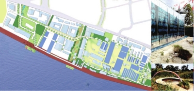 “经纬建筑”设计方案围绕科技商务、创意设计、特色金融、文化休闲核心功能,着重体现区域的独特性、多样性、历史感、低碳型和智慧型。其中“生命之水”板块做足“水文章”,以“能量之水”-区域开发引擎、“活力之水”-室外空间活力点、“艺术之水”-铺装小品艺术化处理、“生态之水”-水资源循环利用,精心设计杨树浦水厂及东方渔人码头周边的场地,着重展示水域的重要性和灵动妩媚。