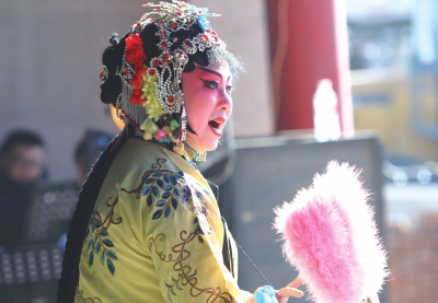 2月9日,辽宁省朝阳县文化艺术推广中心在大庙镇集市上为村民表演传统评剧《姐妹易嫁》。据悉,该艺术中心计划于正月里奔赴六个乡镇,表演传统评剧和综艺节目约五十场,让当地百姓过个文化年。 ■仇一军摄