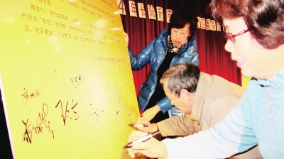 联谊会的高潮,是社区居民纷纷上台,在《杨浦区同创共建上海市文明城区和国家卫生区响应书》上踊跃签名,拉开了长阳新苑社区全体居民投身“双创”活动序幕。