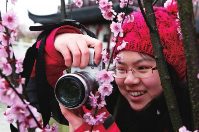 图为摄影爱好者正在拍摄梅花。 ■王照辉摄