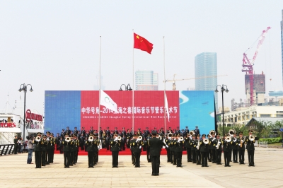 5月3日晚,中华号角——2014上海之春国际音乐节管乐艺术节暨“中华杯”中国第八届非职业优秀(交响)管乐团队展演在复旦正大体育馆闭幕。由解放军海军军乐团,来自法国、泰国、韩国的三支外国团队,上海市控江中学等管乐团联合表演的快闪《最炫民族风》拉开了晚会序幕。市委常委、统战部部长沙海林宣布管乐艺术节闭幕;中国国民党副主席、台湾嘉义市市长黄敏惠,中国国民党组工会副主委、云嘉南地区总督导陈政宽,中国音乐家协会管乐学会主席、管乐节艺术总监于海,中国人民解放军军乐团政委王增强,区委书记陈寅,区委副书记朱勤皓等出席。