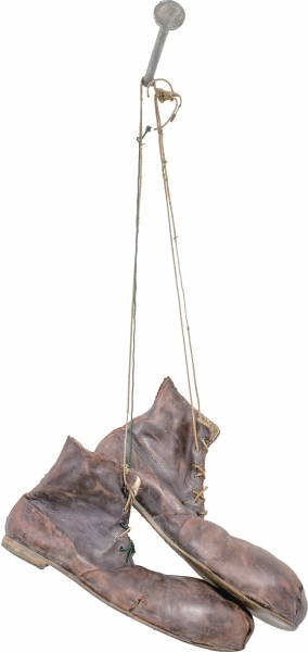 ●一双小丑的鞋子,悬挂在入口处欢迎观众的到来。这是总数为七双的作品系列之一,代表一周七天;