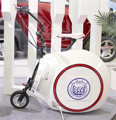 “绿色”是今年同济大学展项的一大特色。2座3门的“微米电动车”,由浙江立通新能源汽车有限公司委托同济汽车设计研究院有限公司设计开发;以氢为能源、国内首架纯燃料电池无人机“飞跃一号”,由同济大学航空航天与力学学院许震宇教授联合飞机企业研制,续航时间可达3至5小时;“沼气红外辐射滚筒干燥机”,可用于粮食干燥、农副产品烘干及工业产品干燥,由机械与能源工程学院吴家正教授主持研发……此外,还有不少大学生原创研发项目亮相工博会。前后一小一大两个轮子,体积小、质量轻、可折叠,电驱动、外壳量身设计,能随身携带上地铁、公共汽车、火车,这款“便携式辅助移动设备”由同济大学汽车、机械、电子与信息工程等专业15位学生团队自主设计、制造,是一个小型的辅助交通工具,起着与公共交通工具的连接作用。