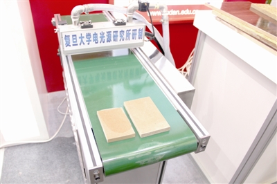 复旦大学参展项目“十千瓦级大功率紫外LED光固化系统”亮相科技创新展区。在印刷、涂料等固化领域,大功率的紫外光系统能大大提高产品的生产效率,降低生产过程中的污染,但存在散热问题。复旦大学的这个项目解决了大功率紫外LED集成封装中的散热难题。该项目具有自主知识产权,合作企业的紫外LED光固化系统产品现已应用于木地板、印刷、家具等行业,2013年至今产值6000万元,目前正处于高速发展阶段。