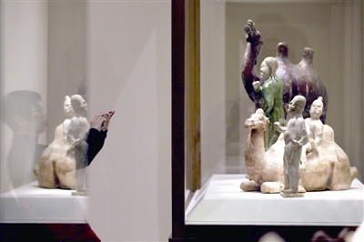 11月6日,大型文物展“丝绸之路”在中国国家博物馆开幕,展至2015年1月5日。展览共分为黄金草原与中国的早期交流、汉营西域与丝路交通、胡人来华与胡风浸润、厚重多元的宗教艺术、包容四方的大唐文化、碧波中的帆影6个单元,汇集了来自全国16个省(自治区、直辖市)44家文博单位的400余件文物珍品,是近年来国内举办的综合反映丝绸之路悠久历史和伟大意义的最大规模的展览。■新华社记者 沈伯韩 摄