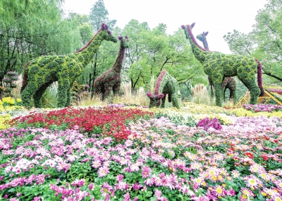 绿野仙踪、长颈鹿之家、林中小花屋、踏花马蹄香、林中欢歌、金蕊流霞……位于蘑菇亭大草坪上的“万菊争艳”室外景点展区中,孩子们喜闻乐见的动物家族在这里齐聚亮相,六组生动逼真的动物造型及颇具魔幻风格的森林树屋等景点充分烘托出菊花的姿、色、形之美,展现出菊花的蓬勃朝气和现代菊艺的独特魅力。