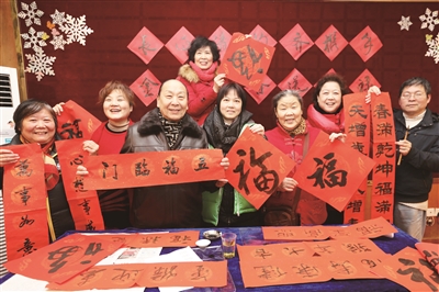 清韵画院自成立以来,每年都为社区居民、福利院老人赠送书画、书写春联,至今已有十三个年头。他们中大都年过半百,头发花白,但对书法的热情不减,当天共书写福字100张、对联50幅,一幅幅充满喜气的春联、一句句热情洋溢的话语,深受居民欢迎。