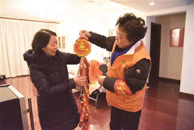 今年春节期间,61岁的长白新村街道长白二村第一居民区党总支书记严沪生比往年更忙。除夕夜,严沪生穿上醒目的绿色羽绒背心,戴上“平安志愿者”的红袖标,拿上手电筒和宣传小喇叭,准备出门巡逻:“现在是18点,距离志愿者全体到岗还有1个多小时,我先出去兜一圈,有备无患。”她把外套领子往上提了提,匆匆钻进了夜色里,小喇叭开始重复播放:“祝大家新春快乐,阿拉要争做守法市民,不放烟花爆竹,过一个文明健康的春节!”期间,趁着巡逻的档口,她匆匆回家,花了一刻钟吃完年夜饭,和女儿女婿稍微聊了几句后,又马不停蹄地回居委会去了。