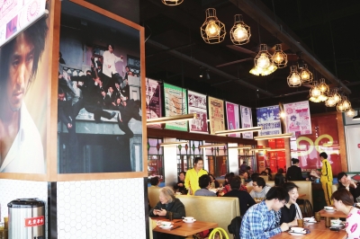 餐厅场景设计以上世纪80年代香港电影餐厅风格为基调,以星爷电影中出现的场景为点缀,并在设计过程中留下了较大空间,满足星爷电影中更为细分主题的场景布置,个性十足的细节布置深得年轻人的喜爱。