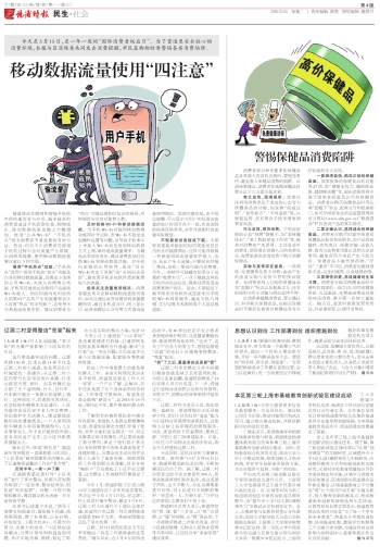 随着移动互联网和智能手机技术的快速发展与应用,越来越多的消费者通过手机获取信息、购物娱乐,移动数据流量也随之大幅增加。使用“公共Wi-Fi”、“手机热点”成为消费者节省流量的有效方法。然而,仍有不少消费者在使用手机的过程中会对流量产生质疑。区消保委提醒,使用移动数据流量要注意以下四方面。