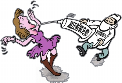 近日,福州的林小姐经朋友介绍,结识了微信朋友圈内一位“韩国整形李医生”,其声称只需2000元就可以注射隆下巴,注射地点在一家宾馆内。林小姐一开始对注射效果很满意,谁知一个多月后,她的下巴越变越长,最后竟成了“鞋拔子脸”。万般无奈之下,她只好去公立医院检查。经诊断,林小姐是被注射了违禁药品“自体细胞生长肽”,导致下巴增生,而目前国内并没有允许将这种药品进行整形填充。 ■新华社 商海春