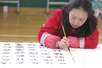 3月18日,由区教育局党委、区总工会主办的“教苑书法展风采,中华文化共传承——2016杨浦区教师板书·书法·钢笔字大赛”在铁岭中学体育馆举行。最终,区少年宫的娄斐、昆明学校的叶梦琦、工农新村小学的陈俊等获得一等奖。 ■记者 朱良城 摄