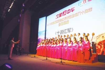本报讯 近日,激扬嘹亮的歌声响彻在新江湾城社区文化活动中心影剧院。由区文化局、新江湾城街道主办,区文化馆承办的“红星耀中华”——杨浦区纪念红军长征胜利80周年合唱展演在此举行。