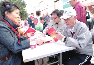 11月11日,延吉新村街道举办区人大换届选举的集中宣传活动,除了提供便民服务外,现场专门设置咨询台,为居民解读换届选举的政策。