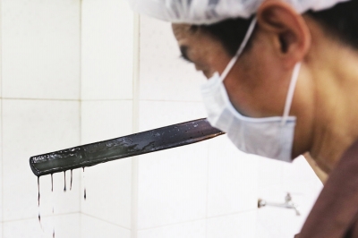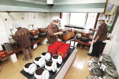 那么,膏方是如何制作出来的?荣庆堂董事长戎爱娟介绍说,药材的质量是制作膏方的第一环节,有了合格、优良、地道的药材,加上配方的剂量和质量,也就有了膏方的质量保证。再次是煎膏,在“膏方”加工过程中,由专人负责,具体操作人员持证上岗,按要求认真填写原始记录、并与药料和过程同步,在煎汁前,把中药饮片浸泡浸透,再按要求煎汁、取汁,然后是浓缩收膏。用高温消毒后的盛器进行灌装,进入凉膏间。凉膏间按要求规范操作,膏滋出凉膏间认真核对,确认无误后,再加贴行业协会统一印制的“防伪绿色标识”再出货。整个熬膏过程,行内有个七字诀:“浸(药)、煎(汤)、榨(汁)、化(膏)、滤(渣)、熬(炼)、收(取)”。