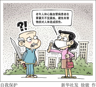 武俊平还提醒,雾霾天近地层空气污染较严重,雾滴在飘移的过程中,不断与污染物相碰,会严重破坏空气质量。老年人和心脑血管病患者要避免晨练,年轻人更要避免剧烈运动。雾霾天进行剧烈运动吸入的有害颗粒容易在人体内滞留,而锻炼身体特别是剧烈运动时吸入空气的量比平时多很多,更是加剧了有害物质对人体的损伤。