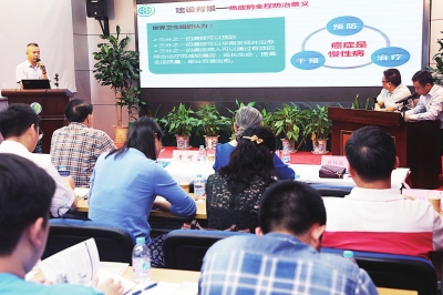 日前,“医院-社区双向联动全程防治肿瘤模式研讨班”在市东医院举行。研讨班旨在推动肿瘤早期预防、筛查、干预,多学科综合治疗、康复及舒缓疗护等全程一体化发展,提升杨浦区肿瘤规范化防治水平,促进医院、疾控中心、社区卫生服务中心之间的交流协作。会上,来自上海瑞金医院等的肿瘤相关学科专家针对肿瘤的流行病调研、常见肿瘤的早期筛查及干预等内容,开展了精彩的学术讲座。 ■记者朱良城摄