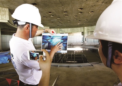 近日,一名上海海昌海洋公园的工作人员在施工现场介绍“企鹅超级碗”项目。“企鹅超级碗”的展示形式将成为公园一大亮点。 ■新华社