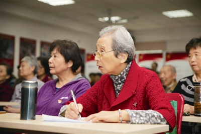| 四平路街道84岁的丁倩华在收看现场直播的同时记录了满满4页笔记,她告诉记者,“报告内容很实在,对国际国内形势、经济、科技等方面都有讲到。”■记者 徐莹娟 摄 |