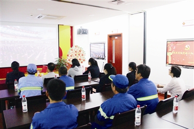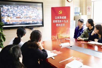 | 欧坚网络公司组织员工集体收看党的十九大开幕会直播。■记者 周琳 摄 |