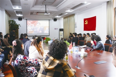 | 平凉路街道党支部组织党员收看党的十九大开幕会直播。■记者 韩玉婷 摄 |