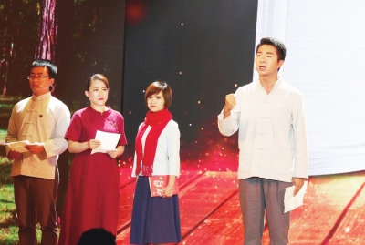 近日,2017年上海市民文化节“阅读好声音”全城微朗读大赛颁奖暨展演在同济大学举行。本次大赛以“家文化”为主题,引导市民充分利用智能终端开展“微朗读”,分享阅读感悟。图为上海梧桐剧社的成员在展演中朗读并推荐《红色情书》。