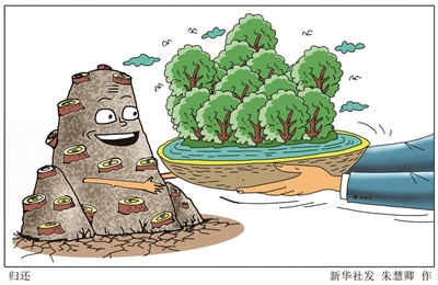 十九大报告提出,形成节约资源和保护环境的空间格局、产业结构、生产方式、生活方式,还自然以宁静、和谐、美丽。面向万里河山的“还”,一字抵万金,体现了建设生态文明这一中华民族永续发展的千年大计,是中国特色社会主义进入新时代的一个鲜明特征。■新华社 朱慧卿