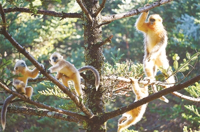 深秋时节,生活在湖北省神农架国家级自然保护区内的金丝猴纷纷从树林中走出来晒太阳,一个个“猴”态可掬,呆萌十足。据了解,神农架金丝猴是我国特有的灵长类动物,属国家一级保护动物,处于我国金丝猴地理分布的最东端,呈孤立的小种群分布,在金丝猴的进化史上占有重要的地位。从上世纪八十年代起,神农架保护区内的金丝猴经过工作人员的多年努力,加之当地生态环境的不断改善,得到了有效保护,目前保护区内生活着一千多只金丝猴。