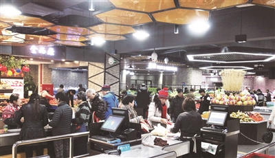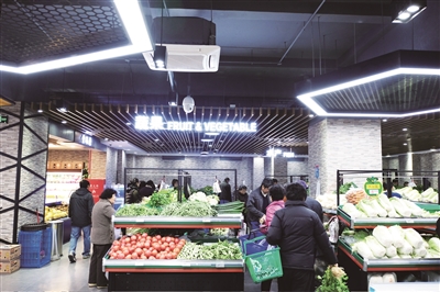 通道宽敞、分区明确,蔬菜、水果、海鲜、豆制品、肉类、干货甚至是生活居家用品样样俱全,购物环境整洁舒适,乍看之下给人一种置身于超市购物的错觉,刚采购完两大袋菜品的王阿姨告诉记者,“我就住在附近,这里环境很不错,价格也实惠,结账还能用支付宝,出门现金都不用带,非常方便。”