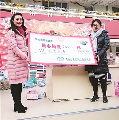 上海民办沪东外国语学校自2000年举办了第一届“英语爱心义卖”活动,坚持至今17年,共获善款40余万元,分别捐赠于区民政局和慈善基金会、新华医院住院贫困儿童、街道困难家庭等,2006年学校获“杨浦区首届慈善之星”称号。每年的爱心义卖活动,学生全程英语交流,不仅提高了英语学习兴趣,更培养了捐资帮困的美德,让学生从小学会关爱别人、关爱社会、感恩生命的可贵。学校通过此项活动,将育人工作内化为学生的道德品质提升,推进了校园道德实践和精神文明建设。2013年底至今,学校的这一善举被上海电视台、新闻综合频道、上海教育新闻网、新民网、《新民晚报》、《新闻晨报》等多家主流媒体报道。