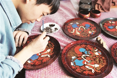 从生漆收割、胎坯制作、工艺装饰到漆器形成,所有环节全部由手工完成,每道工序要求很高,只能靠长期从事漆器制作的师傅凭经验来完成,这就是贵州大方漆器的独到之处。如今,为更好地保护和传承大方漆器制作技艺,当地文化遗产管理部门成立了漆器髹饰技艺传习所,聘请非遗传承人免费授课,并将大方漆器引进电子商务领域,拓宽销售渠道,让这门古老的技艺得以传承。