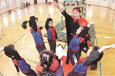 同样的方式也被运用于区教育学院施利娟的教学中,漫威电影中的超人与蜘蛛侠形象“空降”课堂,为学生设计了“英雄拯救地球”的一系列任务,从而实现攀登与爬跃动作的教学。“一节课下来,孩子们的身体得到了充分锻炼,但他们不会因为简单重复一个动作而感到枯燥。”施利娟告诉记者。