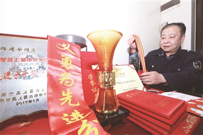 后来,陈建华转行做了保安,一做就是十年。“老陈当班的日子里,公司没有发生过一起安全事故、偷盗事件,这和他的敬业精神是分不开的。”其单位负责人告诉记者。而陈建华的家人对他这些年的见义勇为行为已习以为常,陈建华的表弟说:“他就是个热心肠,能帮忙的事都会尽力帮忙。这次老陈获得表彰,我们为他感到骄傲。”