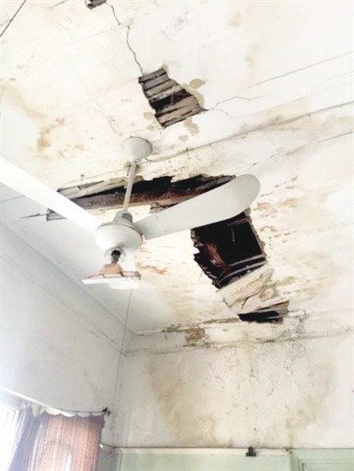 宁国路201弄位于百联滨江购物中心西侧,是原纺二医院职工宿舍楼,现为市东医院所有。这幢占地800多平方米的房屋,是建于上世纪二十年代的老式砖混结构建筑,现居住13户居民,其中常住为8户23人。由于建造年代久远,房屋老化严重,存在墙壁石灰脱落、木质天花板腐烂、扶梯摇晃、下水道堵塞、一楼地面渗水等较多安全隐患。去年以来,强对流天气频繁,雨水较多,老旧宿舍雪上加霜。