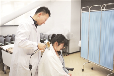 在五角场街道新联会牵线搭桥下,日前,社区卫生服务中心医生、二级心理咨询师来到腾讯众创空间,为园区白领提供中医咨询、中医体质辨识、家庭医生科普宣传、传统康复治疗等义诊和宣教服务。现场,医生们耐心细致地为前来问诊的白领答疑解惑。据悉,应众多园区白领的要求,五角场街道社区卫生服务中心将与腾讯众创空间再次携手,提供义诊服务。五角场街道新联会还将针对此次活动进行满意度调查,为开展更多具有针对性的服务打下基础。图为医生为白领提供拔火罐、推拿等康复治疗。■记者 高靓 摄