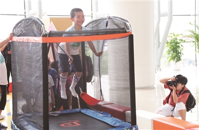 公益环保跑结束后,充满趣味的“运动魔方”成为家长与孩子们的战场。“足球九宫格”、“高低篮球”、“趣味射箭”、“感统平衡木”、“趣味蹦床”等游戏项目让孩子们体会到了运动的快乐。此外,现场设置的“环保小铁三”环节,也吸引了不少亲子家庭参与。