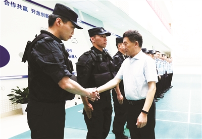 今年4月,杨浦公安分局接市公安局交办线索,以陈某民为首的犯罪团伙通过威逼利诱、暴力威胁等手段实施“套路贷”诈骗。经前期侦查,6月21日凌晨,专案组民警兵分多路,分别在杨浦、闵行、奉贤等三区五处地点,以及浙江省杭州市两处地点,对涉案的陈某民、唐某新、蒋某星等7名犯罪嫌疑人实施抓捕。在现场指挥部,李京通过视频观看抓捕行动,听取案件侦查进展,并与侦办民警进行现场连线。李京表示抓捕行动干净利落,他代表督导组对专案组成功收网表示祝贺,向参战民警致以慰问和敬意。区委常委、政法委书记卢焱,副区长、公安分局局长陈志康指挥抓捕行动。