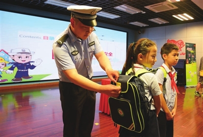 一大早,民办阳浦小学迎来了一位特殊的老师,杨浦交警支队机动大队民警倪嘉辉为同学们带来了以交通安全为主题的“开学第一课”。认识对讲机、警用PDA、执法记录仪等警用装备,了解各种车辆类型,学习马路上各类交通信号,知晓行人应注意的交通安全注意事项……半个多小时的教学时间里,倪警官讲解认真,同学们专注听讲,踊跃回答,课堂氛围十分活跃。