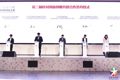 会上,上海市、浙江省、江苏省以及安徽省相关创新创业服务部门共同签署了长三角区域创新创业合作共建协议,携手突破“三省一市”地域壁垒,推动长三角创新资源流动和新动能培育壮大。