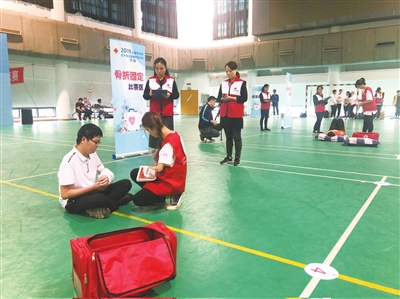 区红十字会负责人表示,近年来,区红十字会高度重视为青少年开展红十字应急救护培训工作,已从社区走向校区、园区,真正形成“三区联动”。本次比赛旨在促进救护知识与技能在高校的普及,提升高校师生在自然灾害和突发事件中的自救互救意识与能力,同时宣扬“人人学急救、急救为人人”的理念,向全社会倡导热爱生命、尊重生命、保护生命的红十字文化内涵。