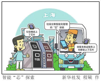 如何通过智能化手段,实现垃圾分类的闭环管理,是未来探索的方向之一。目前无论是村镇,还是小区,上海都出现了一些探索案例。家用的干湿两分类的垃圾桶、收集车和运输车上,都被装上了芯片。■新华社 程硕