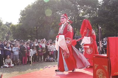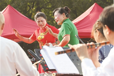 11月2日下午,共青森林公园内群星荟萃,琴曲悠扬,国家一级演员朱俭等知名戏剧演员在这片天然氧吧亮出各自绝活,让市民游客欣赏越剧、淮剧、沪剧等经典戏曲剧目,由此拉开“名家荟萃耀殷行 多元戏曲促融合”2019年殷行街道长三角戏曲周活动。