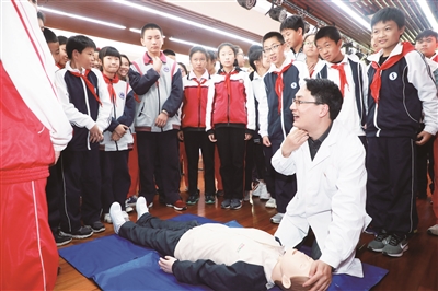 本次活动由殷行街道团工委牵头,联合包头中学、市东医院等区域内团组织共同举办。活动现场,市东医院急诊科主任戴李华、急诊科副主任王勇、骨科主治医师王多军分别作题为《心肺复苏术的运用》、《骨折外伤的简易处理》和《流感的预防及治疗》的微讲座;在互动环节,学生们在医务人员的指导下体验了心肺复苏及简易骨折包扎处理,在掌握现场急救知识和基本急救技能的同时,增强了应对紧急事件的自救与互救的能力。