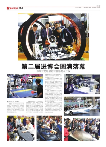 本报讯 第二届中国国际进口博览会11月10日圆满落幕。为期6天的时间里,在“四叶草”造型的上海国家会展中心,共有181个国家、地区和国际组织参会,3800多家企业共赴“进博之约”,超过50万名境内外专业采购商到会洽谈采购。
