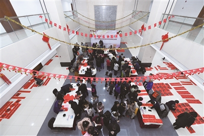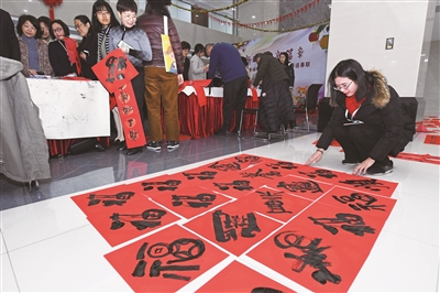 由中国书法家协会会员、上海市书法家协会副主席、市群艺馆研究员田文惠,中国书法家协会会员、上海市书法家协会主席团委员胡卫平领衔,黄孝虎、金小萍、孙佩荣、常记仁、矫健、张剡、华波、吴良安、陆华、吕敏等12名书法艺术家挥毫泼墨,为机关干部职工书写春联送祝福。