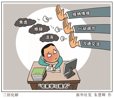 受疫情影响,全国多地尚未开学。“宅家学习模式”给不少学生带来焦虑、烦躁、沮丧等情绪困扰。心理教师提示,应正视负面情绪,通过行动调节、主动交流等化解。■新华社 朱慧卿