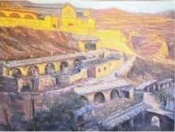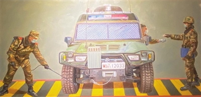 李家山村坐落于吕梁市碛口镇,隐于大山深处。古老的窑洞错落有致地分布于山坡,古村就像与世隔绝的桃花源,尽展山体与建筑结合之美、人居环境自然之美……展览中的油画作品《旗相辉映送吕梁》描绘的就是作者眼中的美丽中国。《旗相辉映送吕梁》作者吴霜嵘为了寻找建党100周年美术创作素材,特意奔赴千里采风,感受浓郁的黄河风情。“乡村里有地域特色的民俗文化,是非常好的创作素材。从绘画的角度来说,这样的风景特别入画。”吴霜嵘说。